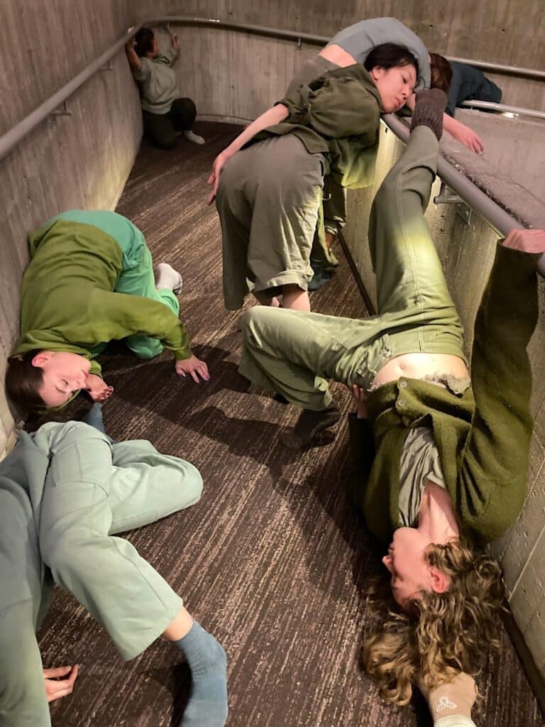 VINES is a site-adaptive practice and performance created by Melanie Kloetzel (kloetzel&co.) with dramaturgical support from Brandy Leary (Anandam Dance). Using state-based and durational approaches, the work explores how the human body can corporeally adapt to urban spaces by rigorously embodying growth patterns from climbing plants.