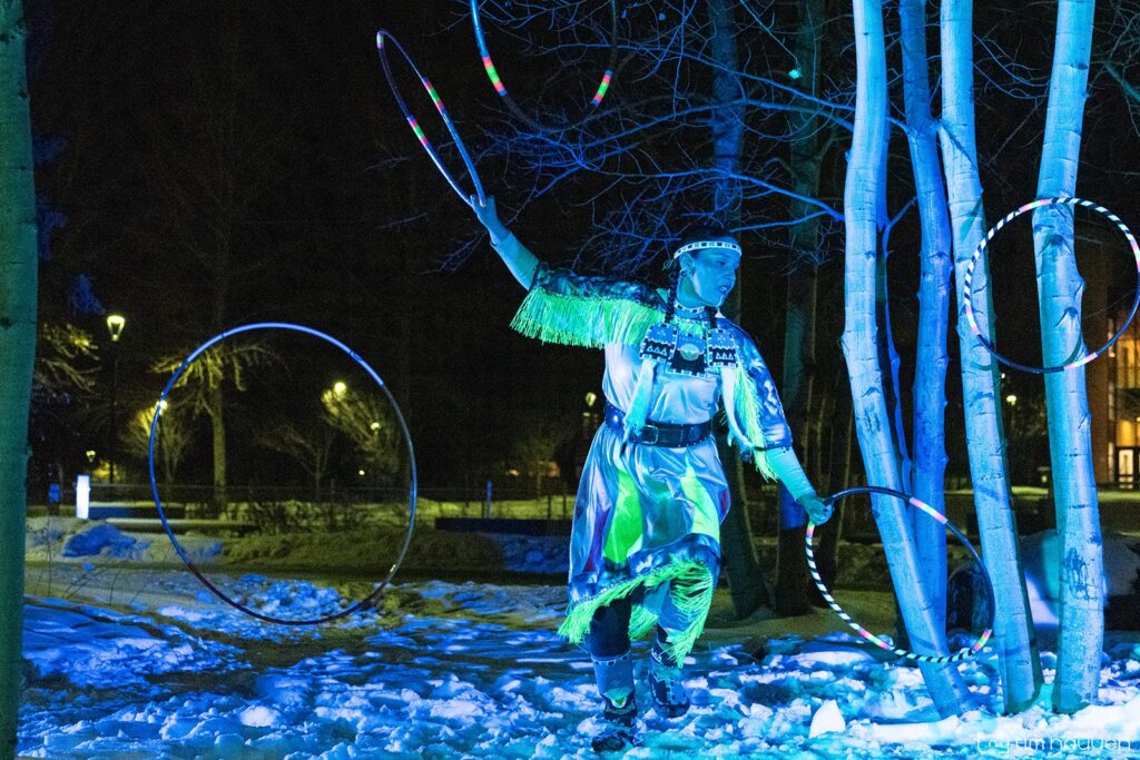 Originating in Anishinaabe culture and now practiced in various Indigenous communities across Turtle Island, hoop dance is a healing dance that explores ideas of circularity, relationality and responsibility. Learning the hoop dance offers a way for a dancer to accept and face their challenges. In working with the hoops, a dancer can find spiritual, physical, emotional and mental healing, as the symbol of the hoop encompasses the four directions and teachings of the Medicine Wheel. Through her workshops, Sandra Lamouche teaches the principles of hoop dance, noting the importance of ethics and protocols in engaging with the form. Participants learn the basics of working with the hoops, while also understanding the importance of the hoop dance as a cultural practice of healing.