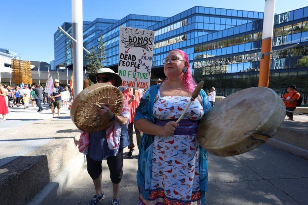The march also featured TRAction co-lead Chantal Chagnon who led the march through drum and song.